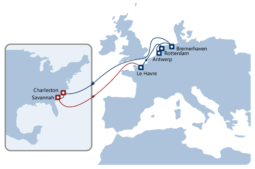 TAX: Northwest Europe to the South Atlantic Le Havre - Rotterdam - Antwerp - Bremerhaven - Charleston - Savannah - Le Havre