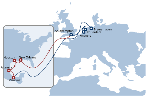 EAG: Northwest Europe to Mexico & US Gulf Southampton - Rotterdam - Antwerp - Bremerhaven - Veracruz - Altamira - Houston - New Orleans – Southampton