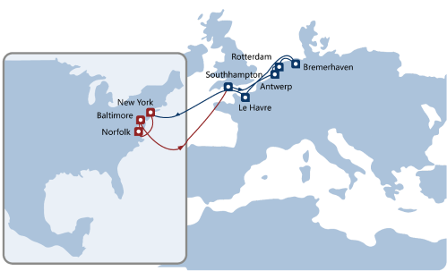 COSCO SHIPPING Lines, a subsidiary of COSCO SHIPPING Holdings, is set to comprehensively enhance its transatlantic services starting February 2025. The upgrade will introduce four robust and dependable direct transatlantic services: Northwest Europe to the North Atlantic (New York, Norfolk, and Baltimore) Northwest Europe to the South Atlantic (Charleston and Savannah) Northwest Europe to the Gulf of the United States and Mexico (Veracruz, Altamira, Houston, and New Orleans) Northwest Europe to Central and West America (Los Angeles and Oakland) This expansion will offer a total of 66 direct port-to-port services. Details of the route names and Ports of call TAE: Northwest Europe to the North Atlantic Southampton - Antwerp - Rotterdam - Bremerhaven - Le Havre - New York - Norfolk - Baltimore – Southampton